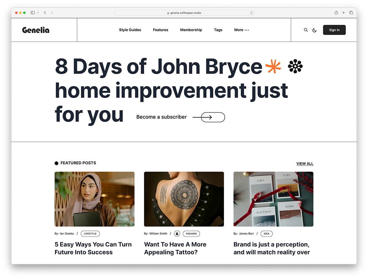 With features like native image lazy loading, SEO-friendly design, and comprehensive social media integration, Genelia enhances user engagement. Whether you’re into personal blogging, tutorials, technology, or lifestyle content, Genelia’s customizable layouts and rich features like custom pages, search functions, and membership tiers make it a versatile choice for any content creator.