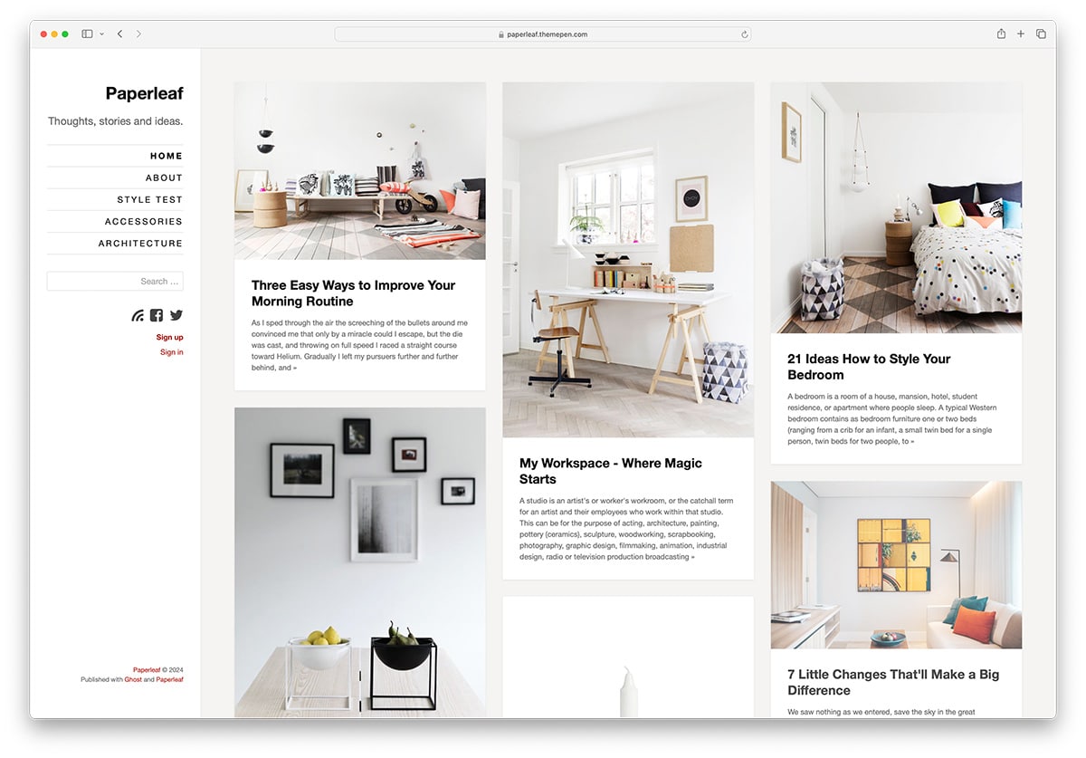 Paperleaf stands out as a versatile theme, designed with a masonry grid layout that efficiently showcases all your content on a single page, ensuring that visitors can easily browse through everything you have to offer, regardless of the volume of posts you choose to display on your homepage. This minimalistic theme is perfectly suited for various uses, whether you’re looking to create a professional business blog, a personal blog to share your stories, or engaging list posts to capture the interest of your audience. Paperleaf serves as an elegant conduit for expressing your ideas to the world.