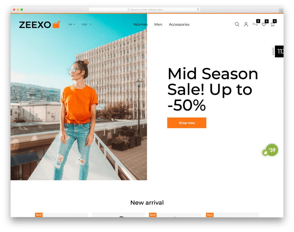 This theme pack has ten homepage variations, all of which help you elegantly showcase your collections. The clean layout with lots of white space improves the website’s visual aesthetics and adds richness to the product images. Everything is chosen carefully, from the fonts to the icons, to maintain design consistency throughout the website. All theme-related files and documentation are included in the download folder; therefore, you can easily get started with this theme and set up a proper online boutique store in a few days.