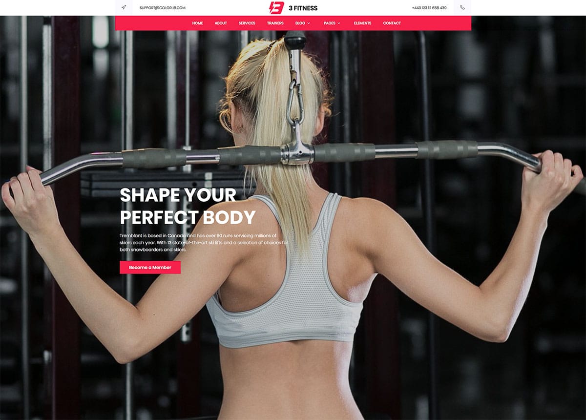 Bodyfit is a dark theme website template with a rich look. This is the best option for you if you are specifically looking for a dark theme template. On the full-width layout, the contents and the visual effects are clearly visible. The user can also easily interact with the website, even on small-screen devices. The homepage header section features a large image slider with bold text and call-to-action buttons. After the image slider, you have an info bar to give your contact details.