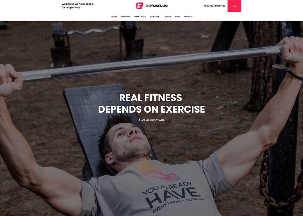In the header, you have a large image slider with bold text and a call-to-action button that takes users to the corresponding service page. This template even has event sections and event pages in its package. If you are creating a fitness community, these event options will help you reach a larger audience base. The footer section is big enough to handle all the important page links, recent posts, and social media widgets.