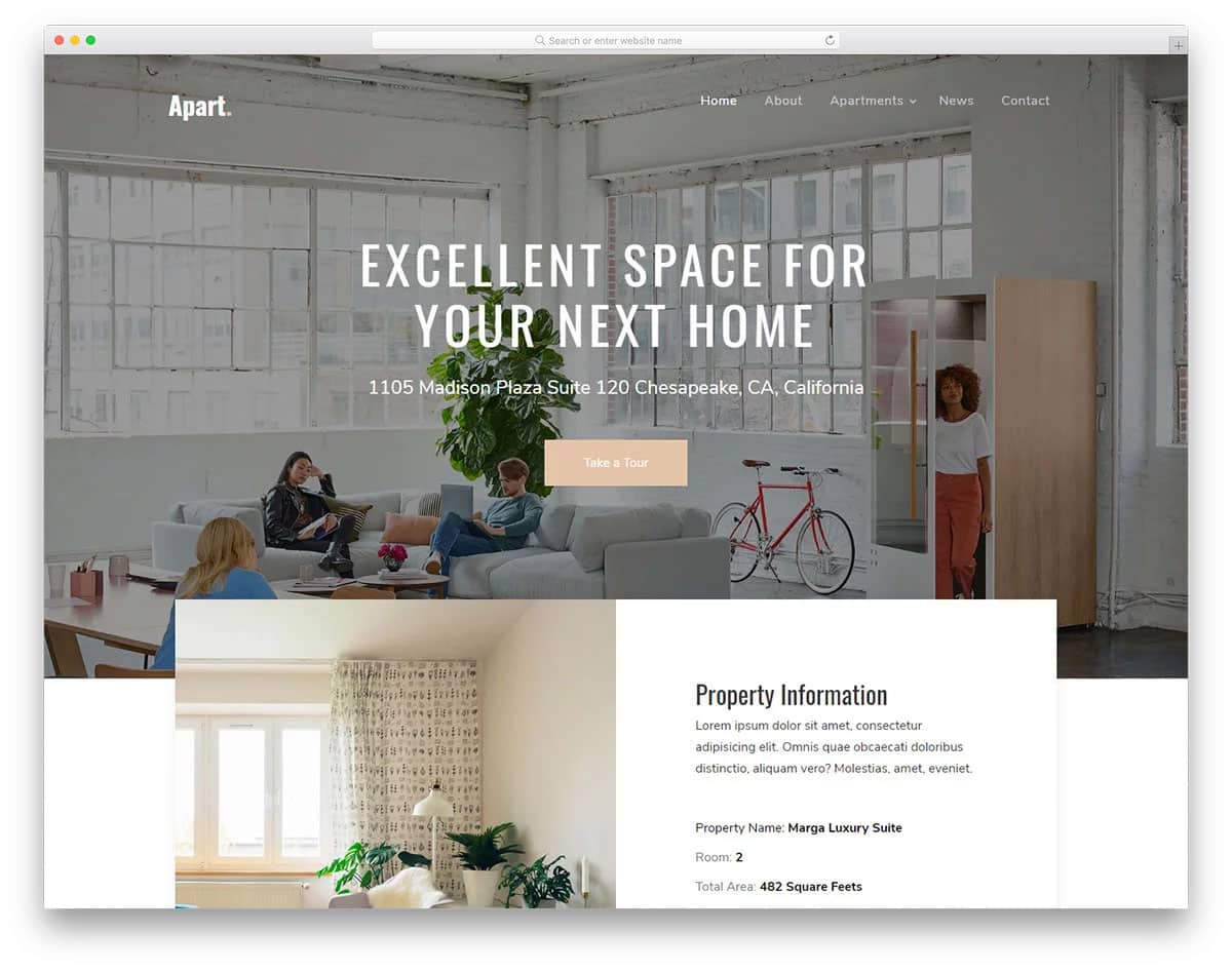 The Apart template is made for a real estate and apartment rental service business website. The minimalist look of this template helps you easily organize content and present it elegantly to users. Since it is a real estate website template, there is plenty of space for images. You can add images of any orientation in this template without any worries. All the basic pages, like the about, property listing page, and contact pages, are pre-designed for you. Even blog layouts are included in this template, so you can easily share news and ideas with your audience. Making a few adjustments to this design can also make it a hotel website template. Free minimal website templates like this with a well-written code base will make the developer work easy.