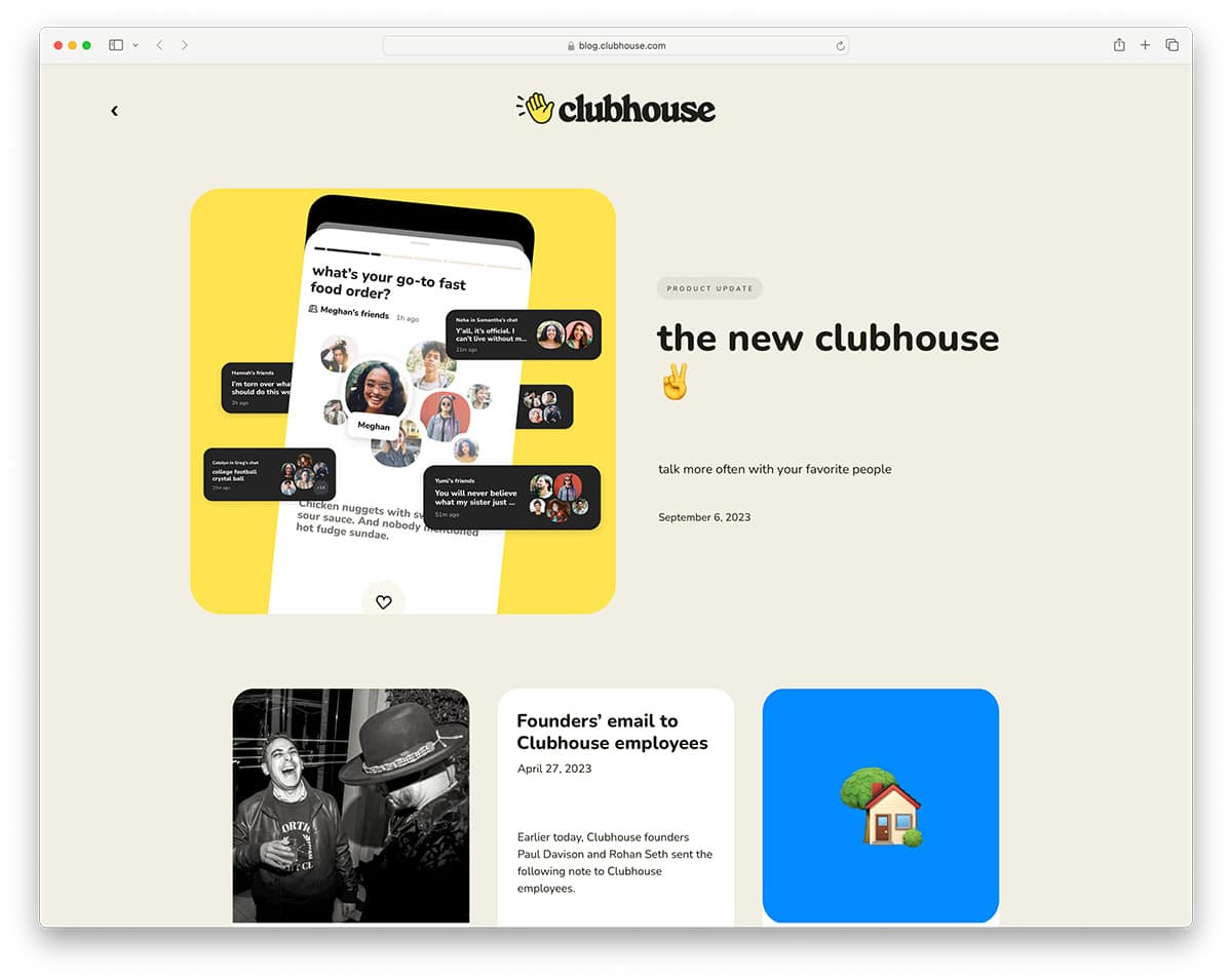 Clubhouse used to be a sensation during lockdown, but has slowly died since Instagram, X, and others have introduced their alternatives. However, they use Ghost for their blog and have done a great job customizing it to match their design language.