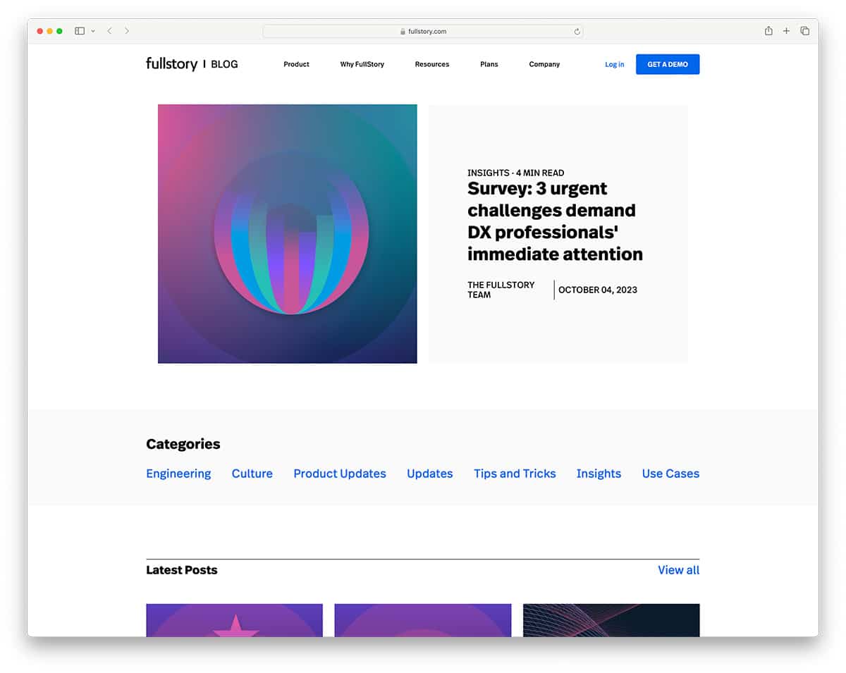 Fullstory is a platform that focuses on tracking and optimizing user experience. They use Ghost for their company blog to announce product news, engineering insights, case studies, etc. If you are wondering whether Ghost has a good user experience, the fact that Fullstory uses it should be enough to convince you it has the best UX.