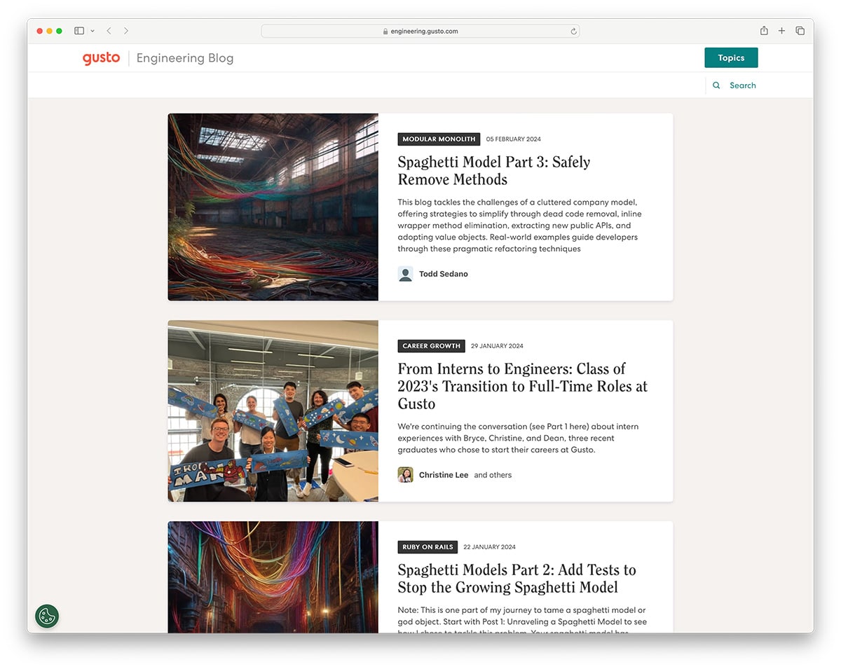 Gusto is the most popular HR and payroll management platform. They are using the Ghost platform for their engineering blog that shows behind the scenes what and how they are building and what you can expect when joining the company as an engineer.