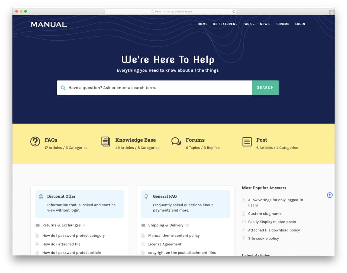 Manual is a proper WordPress wiki theme for professional help desk, FAQ, and forum websites.